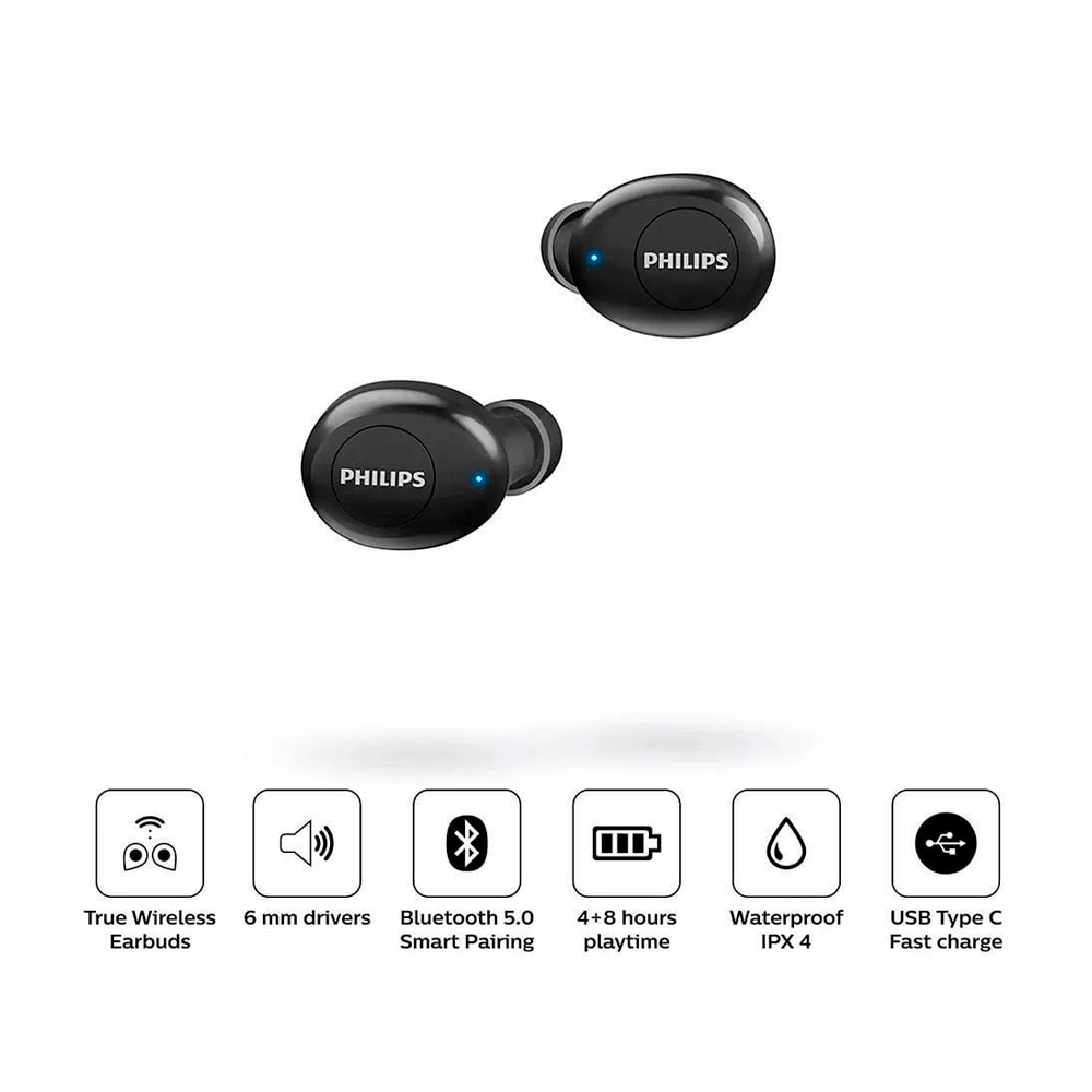 AURICULAR CON MICROFONO PHILIPS TAT2205BK/00 TRUE WIRELES EARPH/BT/IPX4/NEGRO