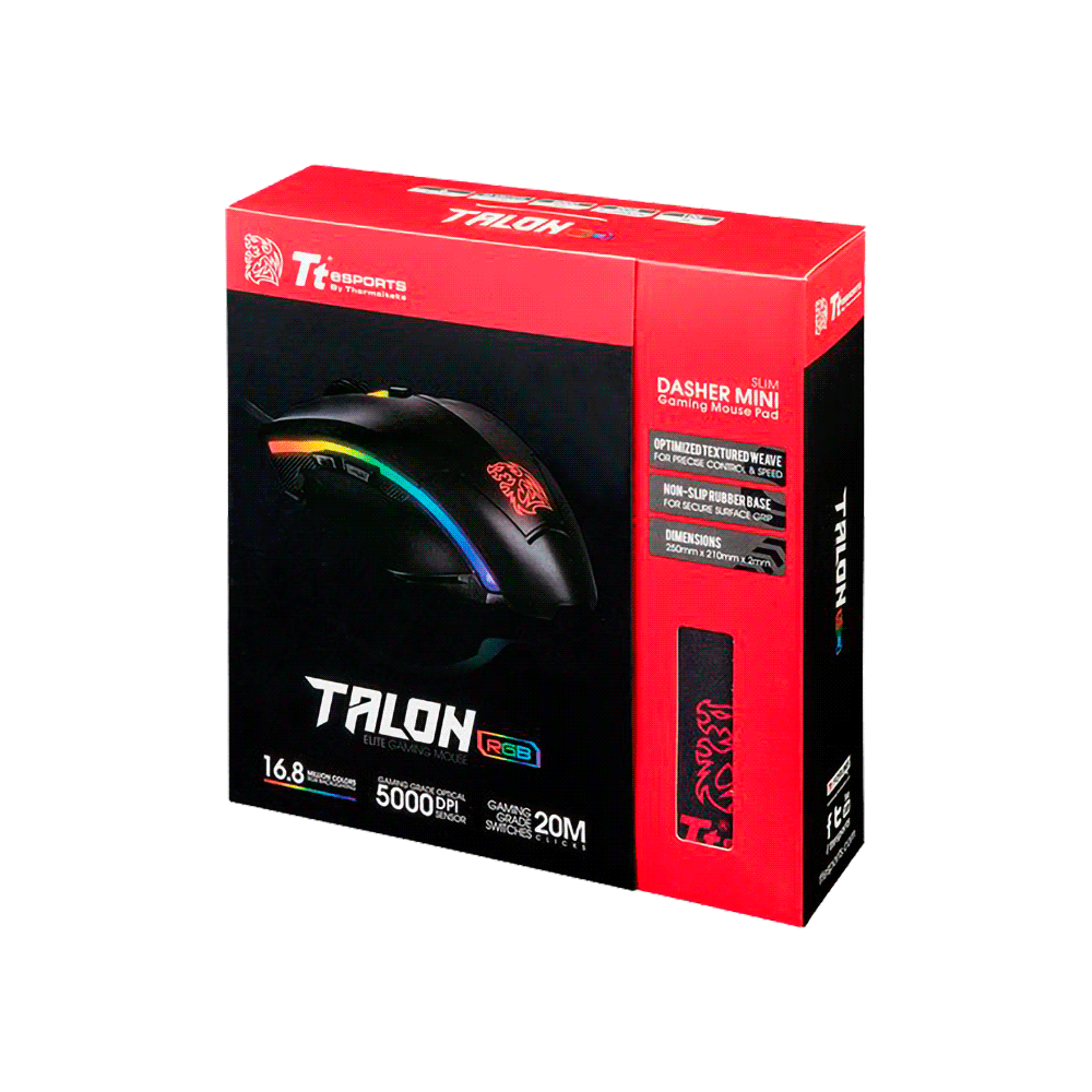 MOUSE + PAD GAMER THERMALTAKE USB TALON ELITE PRO RGB 5000DPI MO-TER-WDOTBK-0 - Imagen 2