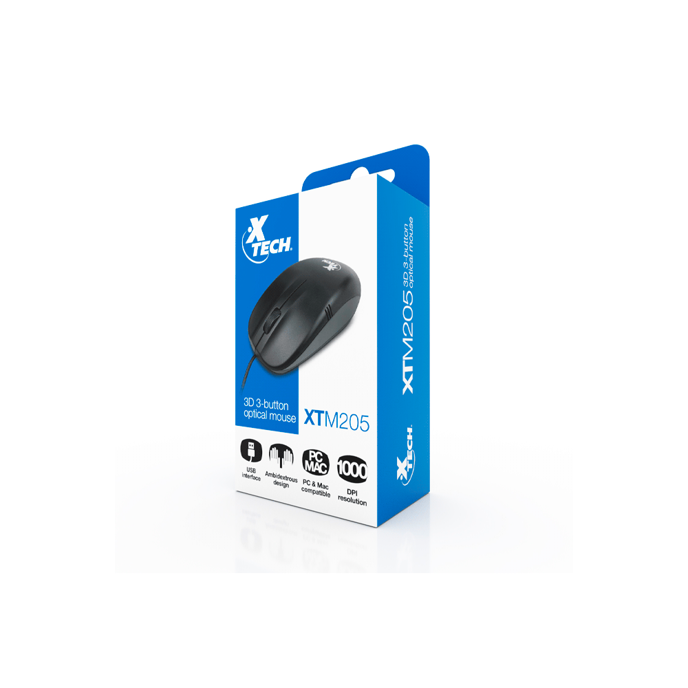MOUSE XTECH USB XTM-205 1000DPI%2F3D%2F3 BOT%2FNEGRO